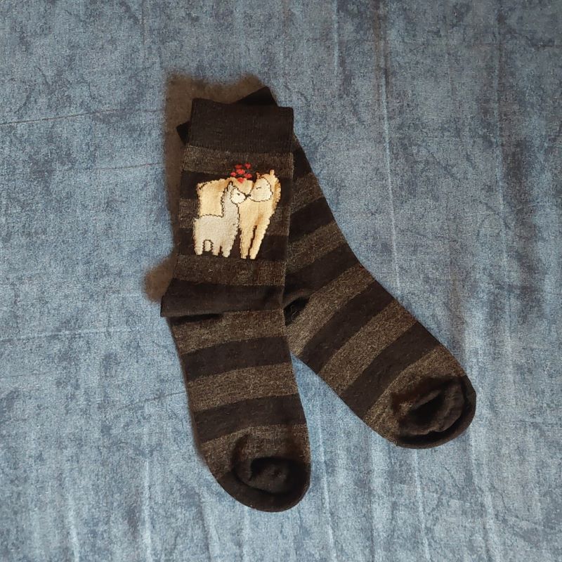 Flauscheweiche Socken mit hochwertiger Alpakawolle - dekorativ gefertigt mit einem süßen Bild mit Alpakamama & Alpakafohlen (Cria).