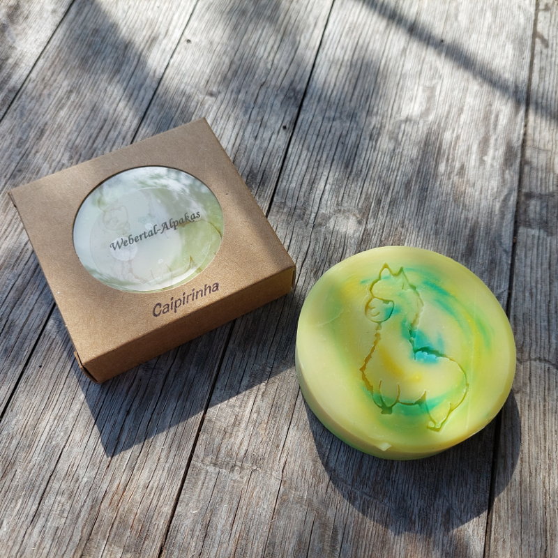 Handgesiedete Alpakakeratinseife mit frischem Gingko-Limettenduft