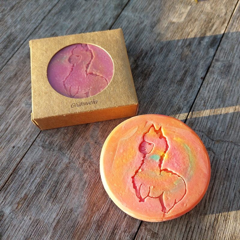 Handgesiedete Alpakakeratinseife mit fruchtigem Glühweinduft