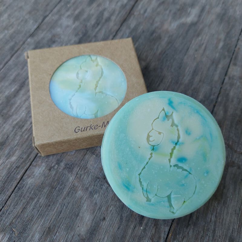 Handgesiedete Alpakakeratinseife mit frischem Gurke-Minze-Duft