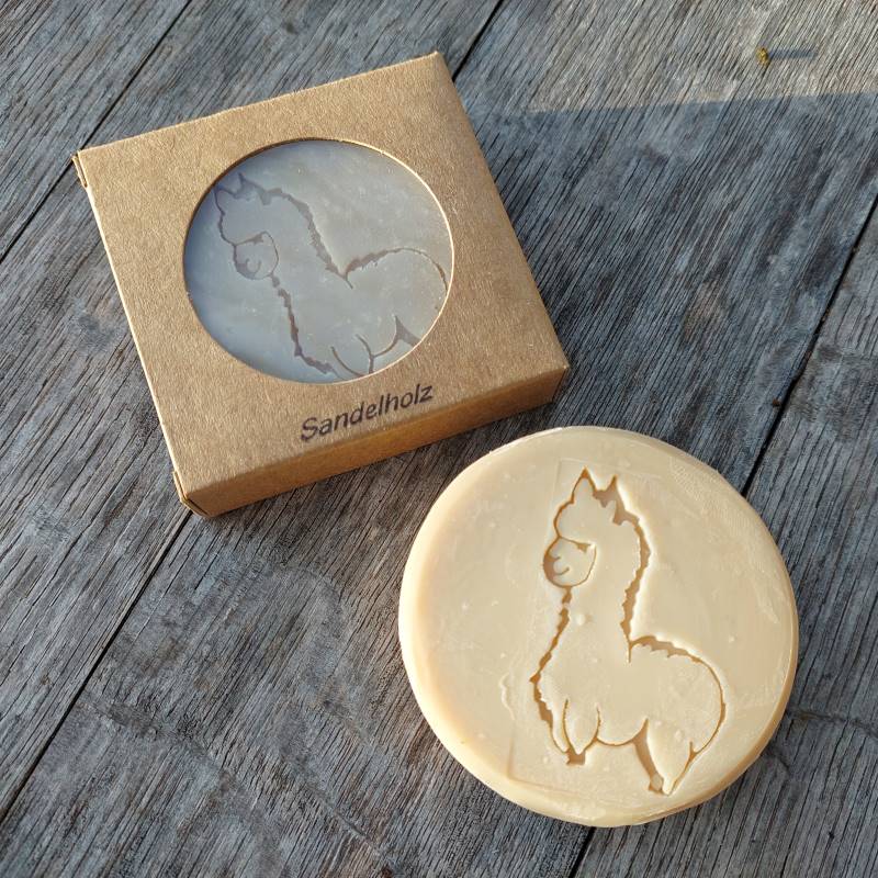Handgesiedete Alpakakeratinseife mit markantem Sandelholzduft
