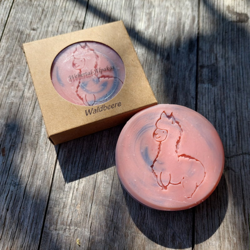Handgesiedete Alpakakeratinseife mit frischem Waldbeerenduft